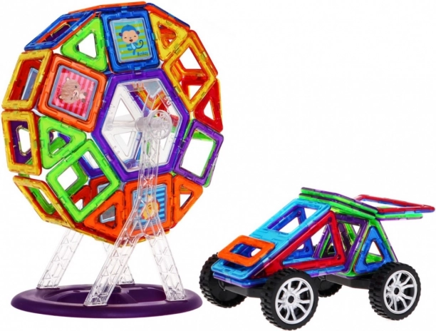 Otkrijte ne samo zabavu, već i učenje s ovom konstrukcijskom slagalicom od 112 dijelova. Snažni magneti omogućuju lako spajanje i izradu 2D i 3D modela – od autića do vozila s kotačima (vrteška). Šareni prozirni elementi potiču kreativnost, logičko razmišljanje i prostornu maštu djece, dok izdržljivi materijali osiguravaju sigurnu igru.