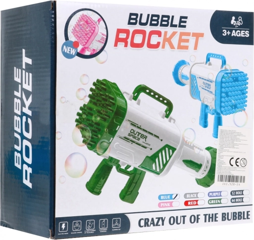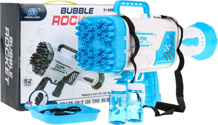 Zabavna puhalica mjehurića s futurističkim dizajnom stvara stotine mjehurića zahvaljujući glavici s 52 otvora. U kompletu je punjiva baterija, dvije punjenja i praktična traka. Može se koristiti i kao prijenosni ventilator – idealno za ljeto, vrt i dječje zabave. Jednostavno upravljanje, LED osvjetljenje mjehurića i bogata oprema za maksimalnu zabavu.
