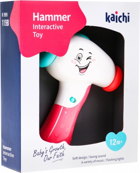 | | Šareni interaktivni čekić je igračka namijenjena djeci od 12 mjeseci. Čekić ima zabavan dizajn i opremljen je svjetlosnim i zvučnim efektima. Nakon svakog udarca pokreće se melodija i različiti zvukovi, a svjetlo na gornjoj strani igračke treperi. Igračka se napaja s 2 x AA baterije koje su uključene u pakiranje. Korištenje ovog čekića od strane vašeg djeteta pozitivno utječe na njegov osjetilni razvoj, potiče motoriku, kognitivne sposobnosti i koordinaciju oko-ruka. Funkcije igračke: - zvučne, - svjetlosne, - spoznajne-oblikovne. | Dimenzije | |
