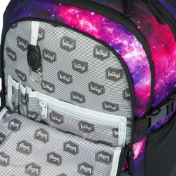 BAAGL Skate Galaxy je promišljena školska torba za učenike koji žele praktičnost i stil. Tri odvojene komore olakšavaju pregledno spremanje udžbenika i bilježnica, a tu su i unutarnji organizator te podstavljeni džep za 15" prijenosno računalo ili tablet. Prednja strana opremljena je s dva remena za pričvršćivanje skateboarda, pa vam je daska uvijek pri ruci.