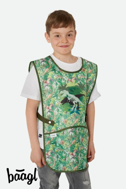 Predstavljamo dječju pregaču s motivom dinosaura, koja ne samo da štiti od mrlja i nečistoća, već i donosi radost zahvaljujući svom šarenom dizajnu. Ova pregača je praktična i stilizirana i sigurno će razveseliti svako dijete: