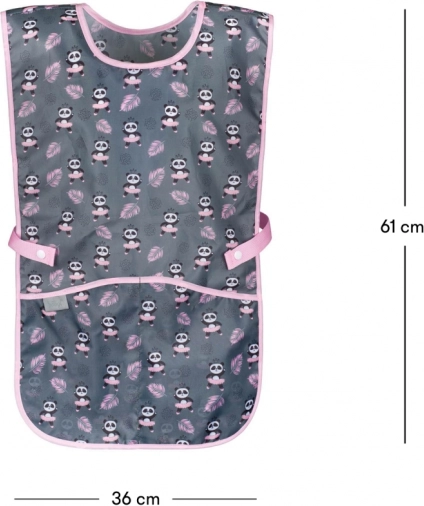 Dječja pregača s motivom pande dizajnirana je za zaštitu djece tijekom raznih aktivnosti. Ima sivi osnovni dizajn s raznobojnim elementima, koji izgledaju razigrano i elegantno.