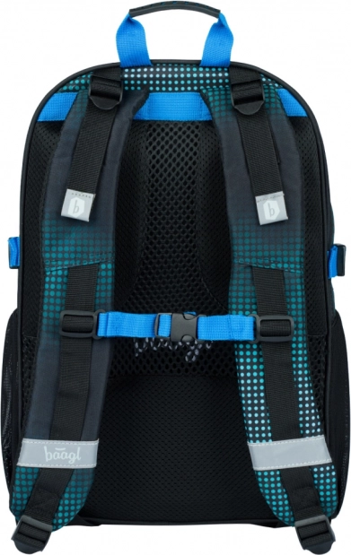 Školski set BAAGL za nogometaše je savršen dodatak za sve mlade sportske entuzijaste. Ergonomski školski ruksak opremljen je s tri zasebno zatvorene komore, uključujući džep za 15-inčni laptop ili tablet. Zahvaljujući ergonomski oblikovanim leđima i potpuno podesivim naramenicama nudi optimalno prilagođavanje stasu.