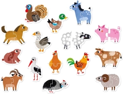 Igrivo učenje kroz slaganje potiče strpljenje, usredotočenost i razvoj rječnika. Djeca mogu imenovati životinje, učiti boje i dijelove tijela, oponašati zvukove životinja i smišljati vlastite priče o životu na farmi. Dijelovi su veliki i lako se drže, pa su puzzle izvrsne kao prvi set za mališane od 18 mjeseci.