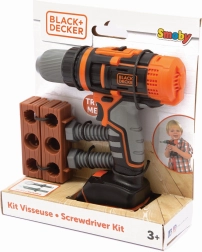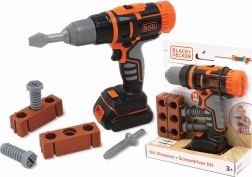 Dječja elektronička akumulatorska bušilica i odvijač SMOBY BLACK&DECKER razveselit će male majstore realističnim funkcijama. U kompletu je “cigla” s otvorima za vježbu, 3 izmjenjiva bita, okretanje udesno/lijevo, 2 brzine i LED osvjetljenje svrdla.
