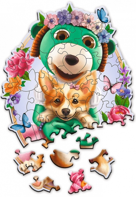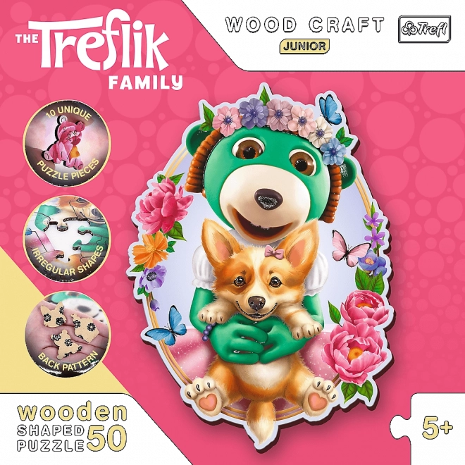 Drvene puzzle iz premium linije Wood Craft Junior nude zabavu i izazov za djecu s motivom Sretnih Treflića. Puzzle su dvostrane, s jedinstveno oblikovanim dijelovima i laserskom preciznošću.