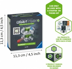 Dodatak Kolotoč unosi dinamiku i nepredvidivost u vaše GraviTrax PRO staze. Kuglice mogu ući na kolotoč iz više smjerova, zavrtjeti se i nastaviti na sljedeću razinu. Odlično potiče kreativnost, logičko razmišljanje te interes za fiziku i prostornu geometriju.