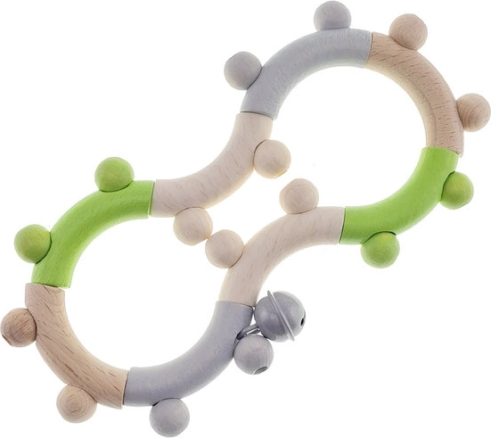 Otkrijte nježno drveno zvečkalo u obliku šarene osmice koje potiče razvoj fine motorike i osjetilnog doživljaja već od rođenja. Zahvaljujući elastičnoj vrpci pojedini se dijelovi lako pomiču i stvaraju razne oblike, što zvečkalo čini izvrsnim pratiteljem kod kuće i na putu.