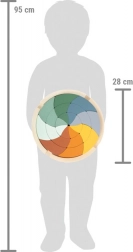 Ove dizajnerske drvene puzzle u modernim bojama donose slobodnu igru u duhu Montessori pristupa. Djeca vježbaju sortiranje, slaganje, stvaranje uzoraka i logičko razmišljanje. Nakon slaganja nastaje dojmljiv motiv mandale koji može poslužiti i kao dekoracija dječje sobe.