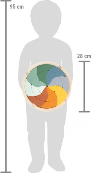 Otkrijte kreativni svijet Montessori igara s ovim drvenim kružnim puzzleom od 24 dijela. Podržava finu motoriku, prepoznavanje boja i oblika, prostornu maštu i kreativnu gradnju. Može se slagati u prekrasnu mandalu ili se dijelovi mogu koristiti kao građevni elementi – idealno za djecu od 3 godine.