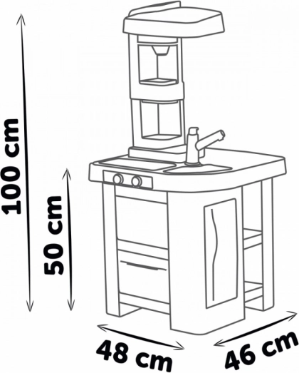 S visinom radne ploče od 50,5 cm, kuhinjica je dovoljno velika da pruži dovoljno prostora za igru. Proizvedeno u Francuskoj, Smoby doprinosi razvoju dječje mašte i samostalnosti.