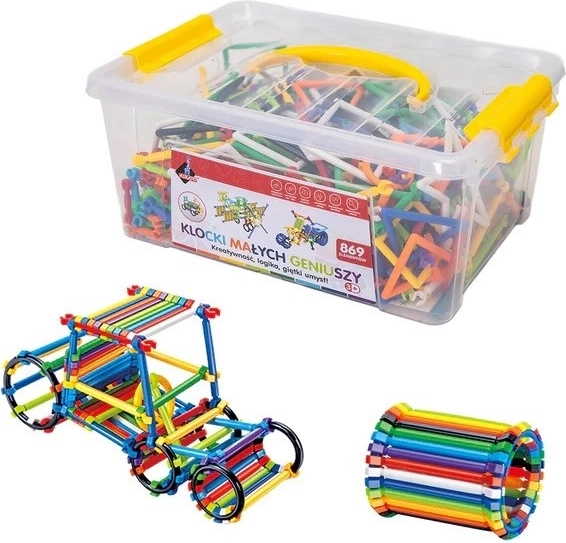 Otkrijte kreativni građevni set za djecu s čak 869 dijelova u 10 boja, koji razvija maštu i prostorno poimanje. Zahvaljujući laganim štapićima i spojnicama djeca lako mogu izgraditi košaricu, ljuljačku, avion, motor ili auto i mnoge druge originalne kreacije. Intenzivne boje potiču na stvaranje i postupno savladavanje zahtjevnijih konstrukcija.
