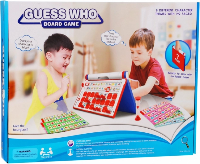 Popularna obiteljska igra pogađanja likova u novom grafičkom izdanju s 8 dvostranih ploča. Dva igrača postavljaju pametna pitanja na da/ne, zatvaraju prozorčiće i korak po korak isključuju likove. Igrajte klasično ili na vrijeme s priloženom pješčanom uricom – brza, zabavna i razvija logičko razmišljanje za djecu i odrasle.