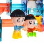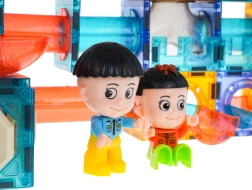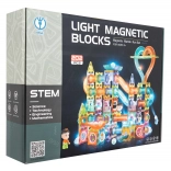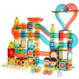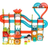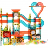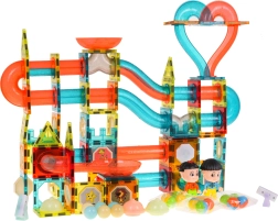 Magnetička konstrukcijska set za djecu od 3 godine. Sadrži 202 dijela i omogućuje izgradnju staze za kuglice u bilo kojem rasporedu. Neki dijelovi su na baterije; nakon uključivanja staza svijetli pulsirajućim svjetlima i igra postaje još zabavnija. Svjetla trepere u 3 načina: brzom, srednjem i sporom – može se odabrati onaj najprikladniji za dijete. Nekoliko kuglica također treperi nakon protresanja. Set sadrži i kolor kapsule koje mijenjaju boju te dva LED reflektora. Napajanje: 18 x 1,5 V LR1130, 12 x 1,5 V LR41, 8 x 3 V CR1220 (baterije su uključene u pakiranje).