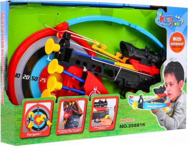 | Luk je zategnut gumom i ima infracrveni nišan za preciznije gađanje. | |