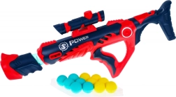 | | Pistolj s mekim lopticama u kompletu namijenjen je djeci od 6 godina nadalje. Svidjet će se svim ljubiteljima vojnih igračaka. Upotreba pištolja je vrlo jednostavna, dovoljno je umetnuti loptice u cijev, nategnuti oprugu povlačenjem cijevi naprijed pa natrag. Igračka ne zahtijeva baterije. Na gornjoj strani pištolja nalazi se nišan koji olakšava precizno ciljanje u metu. |