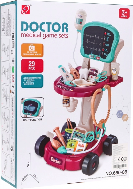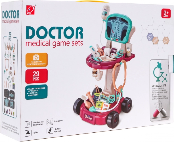 Ovaj siguran i šareni doktorki set dizajniran je kao udobna kolica na kotačićima, koja se lako mogu premjestiti. Djeci nudi sve što trebaju za igru na doktora i razvoj osjećaja za brigu i empatiju.