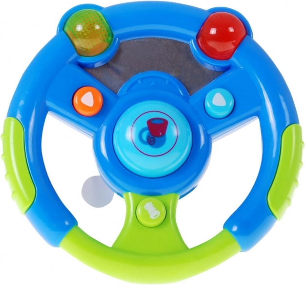 Volan je opremljen zaslonom i zvukovima koji oponašaju stvarnu vožnju. Ergonomski oblik savršeno pristaje malim rukama.