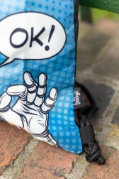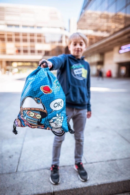Dizajn s robotom i tekstualnim oblačićem 'OK!' daje vrećici jedinstven izgled za djecu.