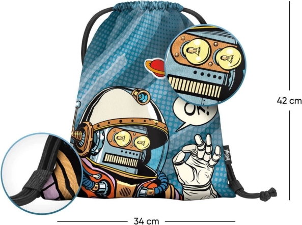 Vrećica za papuče BAAGL Spaceman idealni je dodatak za djecu koja trebaju praktično i stilizirano rješenje za prijenos osobnih stvari. Izrađena od kvalitetnog tekstila, nudi vrlo izdržljiv materijal koji garantira dugotrajnost. Zahvaljujući jedinstvenom stripovskom dizajnu s robotom, ova vrećica nije samo funkcionalna, već i zabavna. Zahvaljujući čvrstim trakama, vrećica se lako može stegnuti i nositi na leđima kao ruksak.