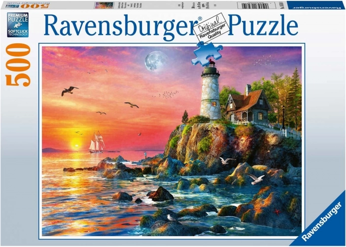 Ravensburger puzzle od 500 dijelova s motivom svjetionika pri zalasku sunca. Kvalitetna izrada, precizni dijelovi i opuštanje za cijelu obitelj. Idealan poklon.