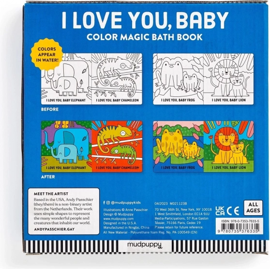 Ova originalna kupka-knjižica s motivima slatkih životinjica dizajnirana je za najmlađe. Na suhom je crno-bijela, ali nakon uranjanja u vodu otkriva živopisne boje koje očaravaju djecu i potiču njihovu radoznalost. Zahvaljujući kompaktnim dimenzijama i mekoj izradi, idealna je za dječje ručice i potpuno sigurna za igru u vodi.