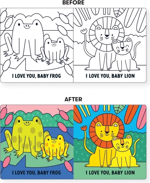 Nakon uranjanja u vodu crno-bijele ilustracije pretvaraju se u živopisne boje – trenutna nagrada koja motivira djecu na igru i istraživanje.