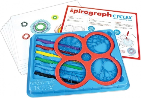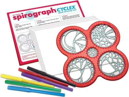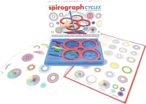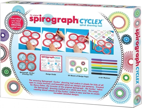 Spirograph CYCLEX nadovezuje se na legendarni koncept iz 1965. i donosi ga u modernom i jednostavnom izdanju. Dovoljno je umetnuti kotačić u vodilicu šablone, odabrati flomaster i pustiti ruku da vodi – u trenu nastaju precizni spiralni motivi bez potrebe za naprednim vještinama.