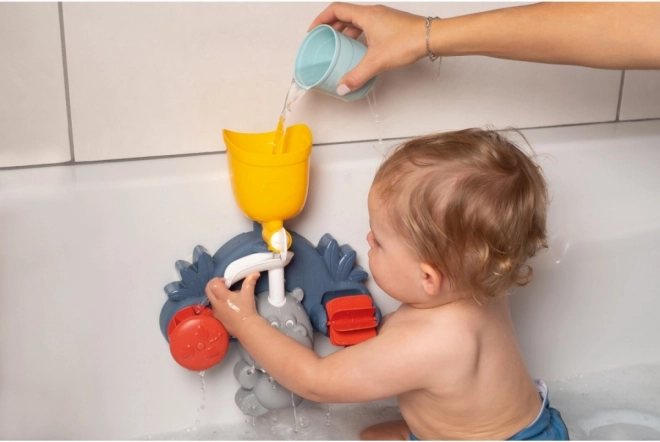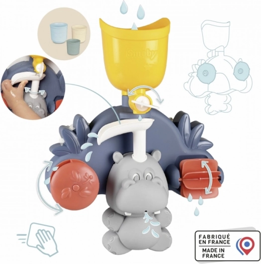 Kupačka igračka Little Smoby Nilski konj pretvara svako kupanje u veselu zabavu. Ulijte vodu u lijevak, pomaknite klizač udesno, ulijevo ili na sredinu i nakon okretanja slavine pokrenut će se vodeni mlaz koji šikne iz gubice nilskog konja i pokrene šarene kotačiće. Interaktivni vodeni efekti motiviraju i djecu koja izbjegavaju vodu.