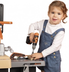 Dječji mega workshop BLACK+DECKER 3-u-1 brenda Smoby ispunjava san svakog malog majstora. Djeca se kroz igru upoznaju s tri zanimanja – mehaničar, slikar i vodoinstalater. Bogata oprema i realistične funkcije produžuju vrijeme igre te razvijaju kreativnost, strpljenje i koncentraciju.
