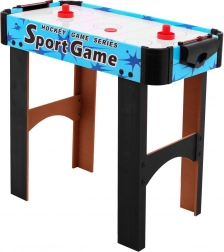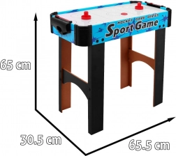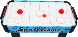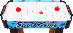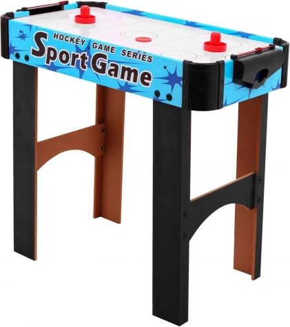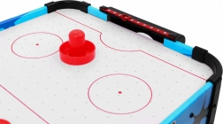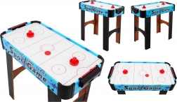 Uživajte u dinamičnoj zabavi s kompaktnim stolnim air hockeyem. Igraća površina s otvorima i strujanjem zraka stvara jastuk po kojem se pak bez trenja glatko klizi. Dva igrača stoje jedno nasuprot drugome i pomoću palica (strikera) pokušavaju ubaciti pak u protivnički gol.