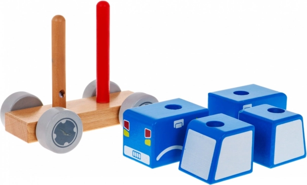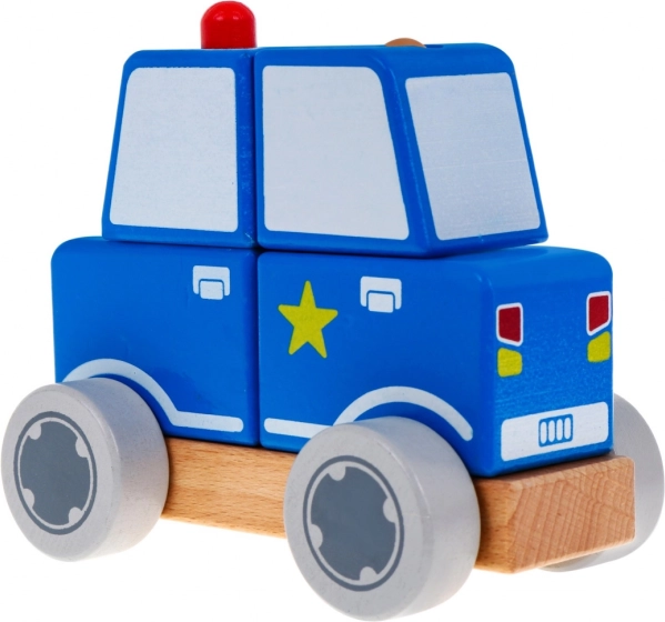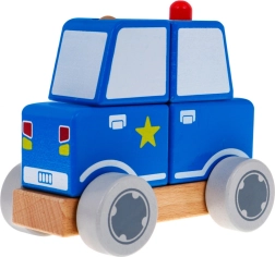 Četiri drvene kocke stavljaju se na dva klina i zajedno čine realistični policijski autić. Idealno za prve logičke zadatke.