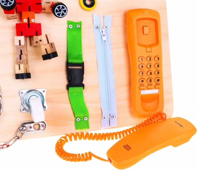 Ploča uključuje razne igraće komponente poput spinnersa, telefona i zvonca. Ovi elementi učenje pretvaraju u igru koju će djeca obožavati.