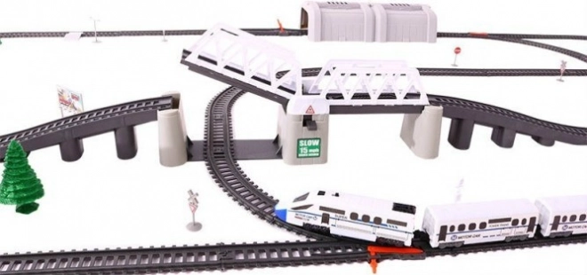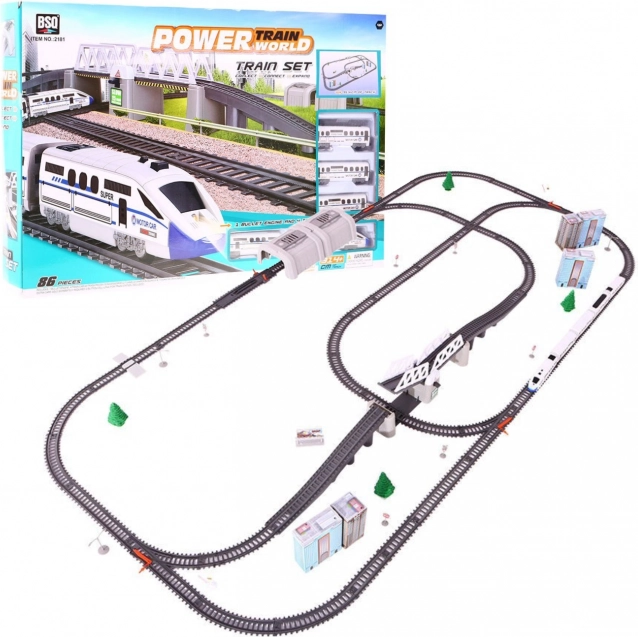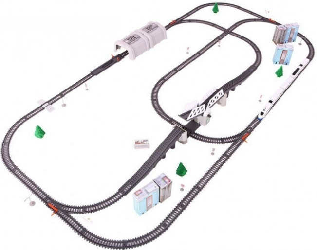Set uključuje pruge sa skretnicama koje omogućuju realnu simulaciju vožnje vlakom.