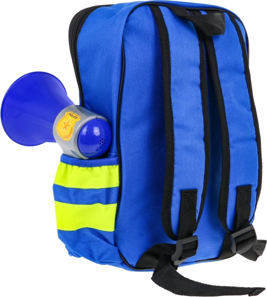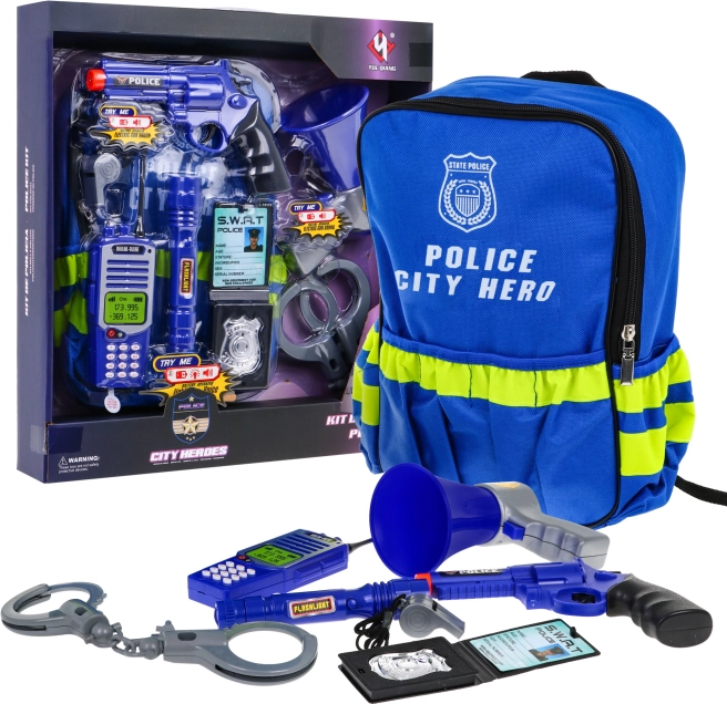| Bogato opremljen, interaktivan, realističan policijski set za djecu od 3 godine. Set se sastoji od praktičnog, prostranog ruksaka i policijskih dodataka. Igračka ima zvučne (pištolj, megafon, motorola) i svjetlosne (motorola i baterijska lampa) funkcije. Napajanje s 6 AG13 baterija (baterije su uključene u pakiranje). Funkcije seta: - prostrani ruksak u koji stane sav pribor iz seta, - pištolj sa zvukovima pucnja, - megafon sa zvučnim efektom, - motorola sa zvučnim i svjetlosnim efektima, - baterijska lampa sa svjetlosnim efektom. | |