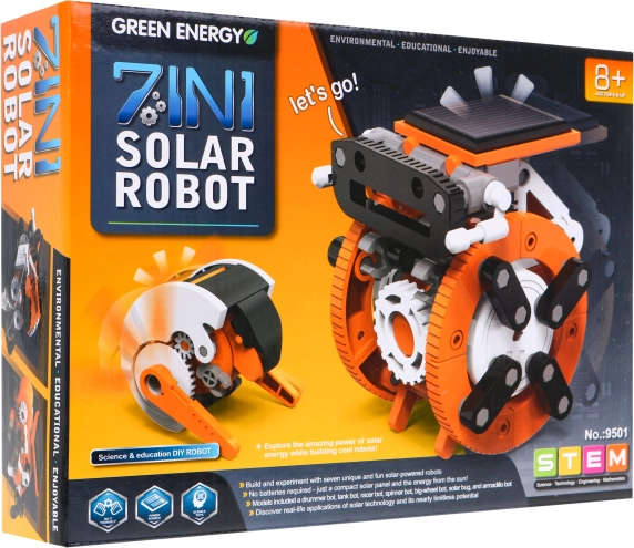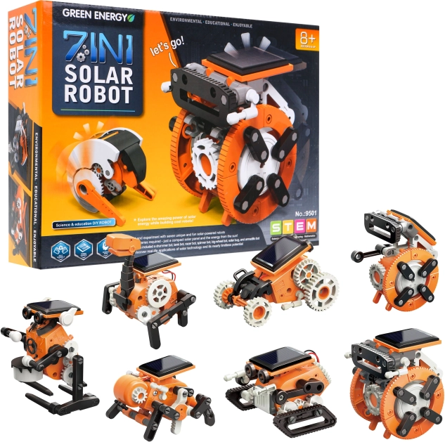Otkrijte čaroliju sunčeve energije sa solarnim setom za izradu robota 7 u 1, koji omogućuje sastavljanje sedam različitih modela vozila pogonjenih sunčevom energijom. Svaki model nudi jedinstvene funkcije koje potiču kreativnost i poučavaju djecu osnovama obnovljivih izvora energije.