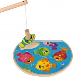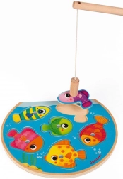 Zabavna drvena magnetska umetaljka za male ribare. Uz pomoć magnetske udice djeca love i vraćaju dijelove na prava mjesta. Sadrži 6 šarenih ribica i 1 udicu, razvija finu motoriku, koordinaciju oko–ruka i prepoznavanje boja i oblika. Prikladno od 12 mjeseci.