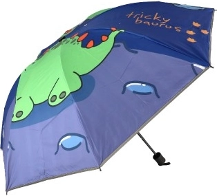 Ovaj dječji kišobran s veselim motivom dinosaura dizajniran je da očara svako dijete. S promjerom od 90 cm pruža dovoljnu zaštitu od kiše, a zahvaljujući reflektirajućim rubovima uvijek ćete biti dobro uočljivi i pri slaboj vidljivosti. Sklopljeni kišobran mjeri samo 25 cm, što znači da se lako može smjestiti u školsku torbu ili ruksak. Idealan pratitelj za školu, vrtić ili izlete!