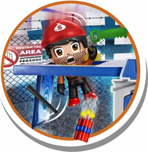 Set sadrži 2 Pinypon figurice (cca 7 cm) i tematske rekvizite za scene potjera, bijegova i uhićenja.