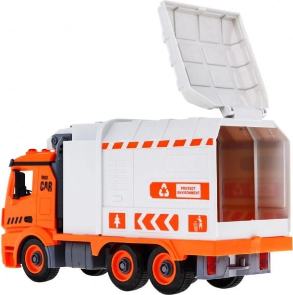 Pomoću odvijača s izmjenjivim bitovima dijete može rastaviti i ponovno sastaviti vozilo. Bočna ruka podiže i prazni spremnike kao kod pravog kamiona za smeće.