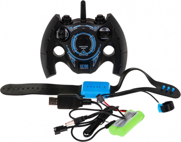 - vozilo, - daljinski upravljač, - upravljačka narukvica, - USB kabel za punjenje upravljača, - USB kabel za punjenje baterije, - 7,4 V baterija. | |