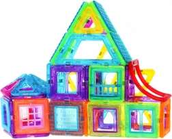 | | Veliki set magnetskih kocaka je igračka namijenjena djeci od 3 godine, ali s njom će se rado poigrati i starija djeca, pa čak i odrasli. Konstruktor pozitivno utječe na razvoj kreativnosti, uči strpljenju i koncentraciji. Kocke su lagane i izdržljive te se od njih mogu graditi sjajne građevine. Zato krenite na posao. | Sadržaj seta | * kocke 184 elemenata * 4 podvozja s dva kotača dimenzija cca 9 cm x 5 cm, * 8 elemenata konstrukcije panoramskog kotača, * 2 peterokuta, * 2 šesterokuta dimenzija cca 8,5 cm x 7,5 cm, * 8 prozora s ogradom cca 4 cm x 2,5 cm, * 2 trostruka kvadrata cca 13 cm x 4,5 cm, * 6 dvostrukih kvadrata cca 8,5 cm x 4,5 cm, * 56 kvadrata cca 4,5 cm x 4,5 cm, * 24 prozora cca 7,5 cm x 4 cm, * 6 trapeza cca 6 cm x 4 cm, * 6 dodatnih dijelova, * slikovni priručnik. * pakiranje cca 51 cm x 35 cm x 5 cm. |
