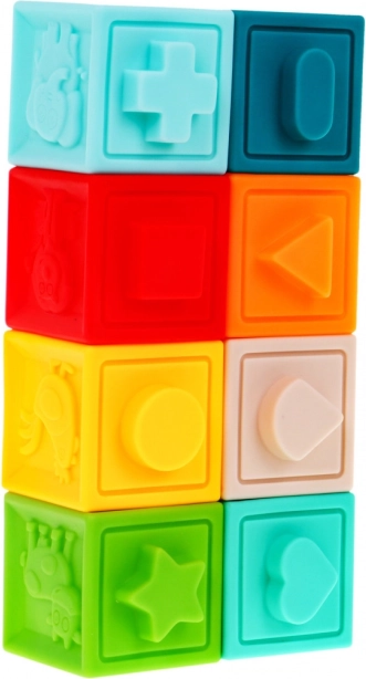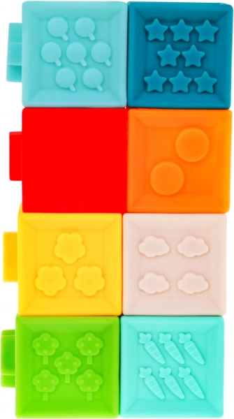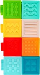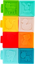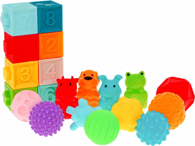 | | Set mekih, sigurnih senzoričkih igračaka namijenjen je djeci od 6 mjeseci. Igračke su izrađene od 100% materijala pogodnih za djecu. Potiču maštu, um, vid i sluh. Elemente seta dijete može slobodno stiskati, čime jača snagu u rukama. Pri stiskanju ispuštaju zvukove koji bude djetetov interes. Set se sastoji od 20 elemenata: sadrži 4 životinjice, 8 loptica i 8 kocaka. Svaki element ima drugačiju strukturu i boju, što djetetu pruža raznolike podražaje za njegova osjetila. |