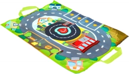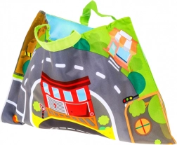 Podloga s cestama, kućama i prirodom zahvaljujući čičak-trakama sklapa se u praktičnu torbu s ručkama. Jednostavno spremanje i prenošenje kamo god poželite.
