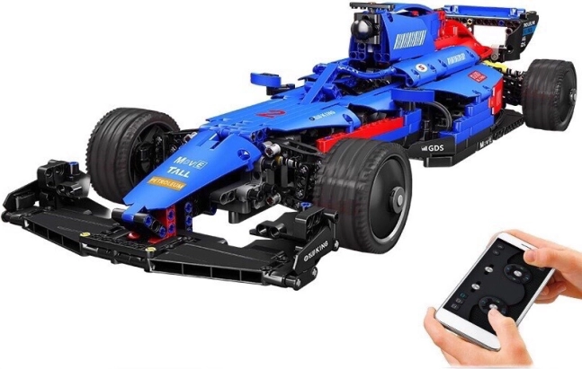 Sastavite vlastiti F1 trkaći bolid i upravljajte njime na daljinu! Ovaj detaljan set od 1065 dijelova pretvara slaganje u akcijsku zabavu – vozilo se kreće u svim smjerovima, ima gumene gume za izvrsno prianjanje i može se upravljati 2,4 GHz upravljačem ili aplikacijom na telefonu. U pakiranju su 7,4 V akumulator, snažni motori i bogata oprema.