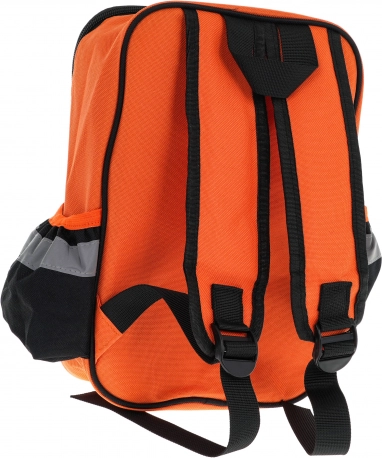 Lagan tekstilni ruksak s glavnim pretincem na patent, vanjskim džepovima i reflektirajućim detaljima drži alat pregledno i sigurno na jednom mjestu.