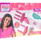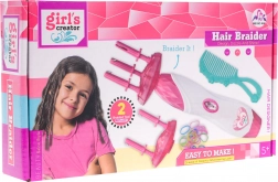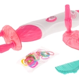 Set za pletenje pletenica je osmišljen za jednostavno i zabavno uređenje kose. Ovaj veseli set uključuje plastični stroj za pletenje s zamjenjivim nastavcima, češljem i 50 gumica za kosu. Dovoljno je umetnuti 2 do 3 pramenova kose u otvore i pritiskom na gumb stvoriti predivne pletenice!
