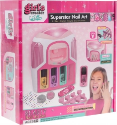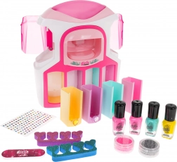 Dječji set za lakiranje noktiju je sjajna zabava za male modne entuzijaste. Sadrži interaktivnu sušilicu za nokte koja radi na 3 AA baterije i nudi realističan efekt sušenja zajedno s blagim puhanjem zraka i svjetlećom kontrolnom lampicom. Posebni pretinci u sušilici omogućuju spremanje lakova i dodataka izravno u njezinom tijelu. Lakovi su izrađeni od netoksičnih materijala i lako se peru toplom vodom.