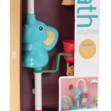 Ova igračka za kupanje s veselim slonom radi na baterije i usisava vodu, koju zatim ispušta kroz slonov surlu u čašu. Čaša je perforirana, što omogućuje raspršivanje vode u različitim smjerovima preko rotirajućeg kotačića od 360 stupnjeva. Tuš je dizajniran tako da donji dio bude uronjen u vodu, dok gornji dio ostaje iznad površine. Zahvaljujući dvjema gumenim odojcima, igračku je lako pričvrstiti na kadu ili tuš. Slonova surla se može dodatno rotirati za 180 stupnjeva, što dodaje na varijabilnosti igre.