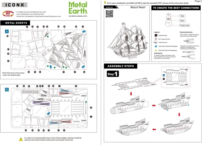 Pojedine dijelove izvadite iz metalnih pločica; po potrebi upotrijebite male bočne rezače (nisu uključeni). Dijelovi se međusobno spajaju pomoću zasuna koji čine jezičak i otvor. Jezičak savijte malim tankim kliještima (nisu uključena) i postupno spojite sve zasune dok ne nastane vrlo realističan majstorski model!